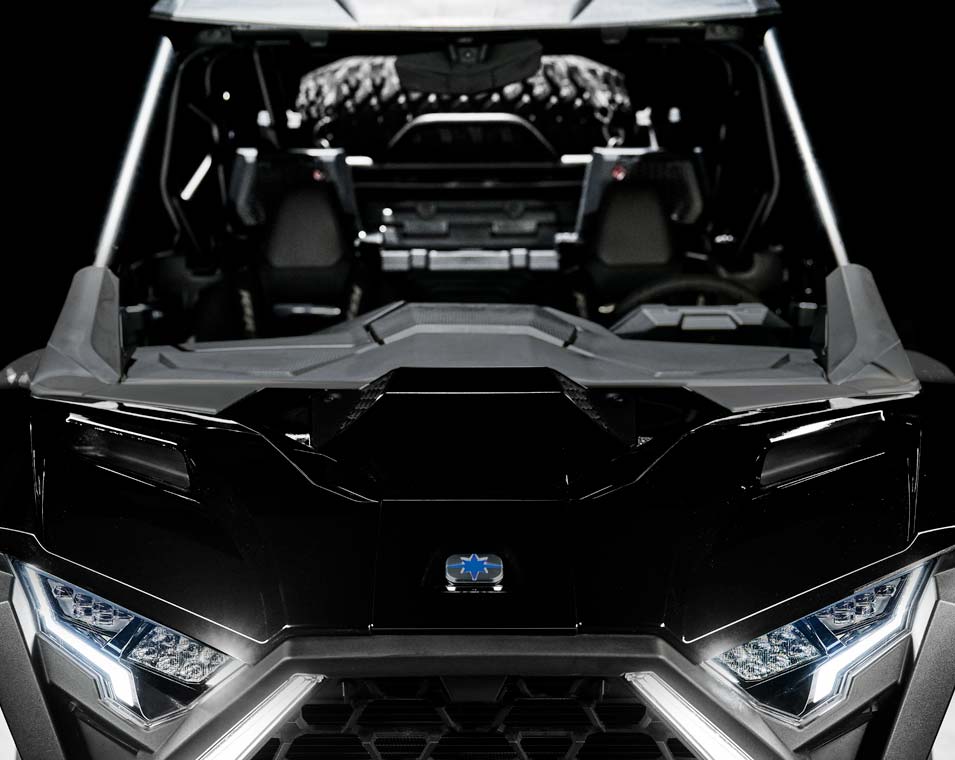- Signature Animated RZR Fang Accent Lighting; White LED, Low / High & Red LED Tail / Brake Lights; Animated Interior Accent Lighting