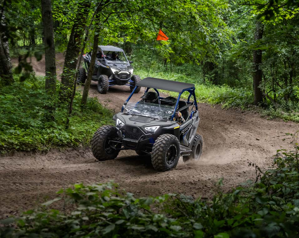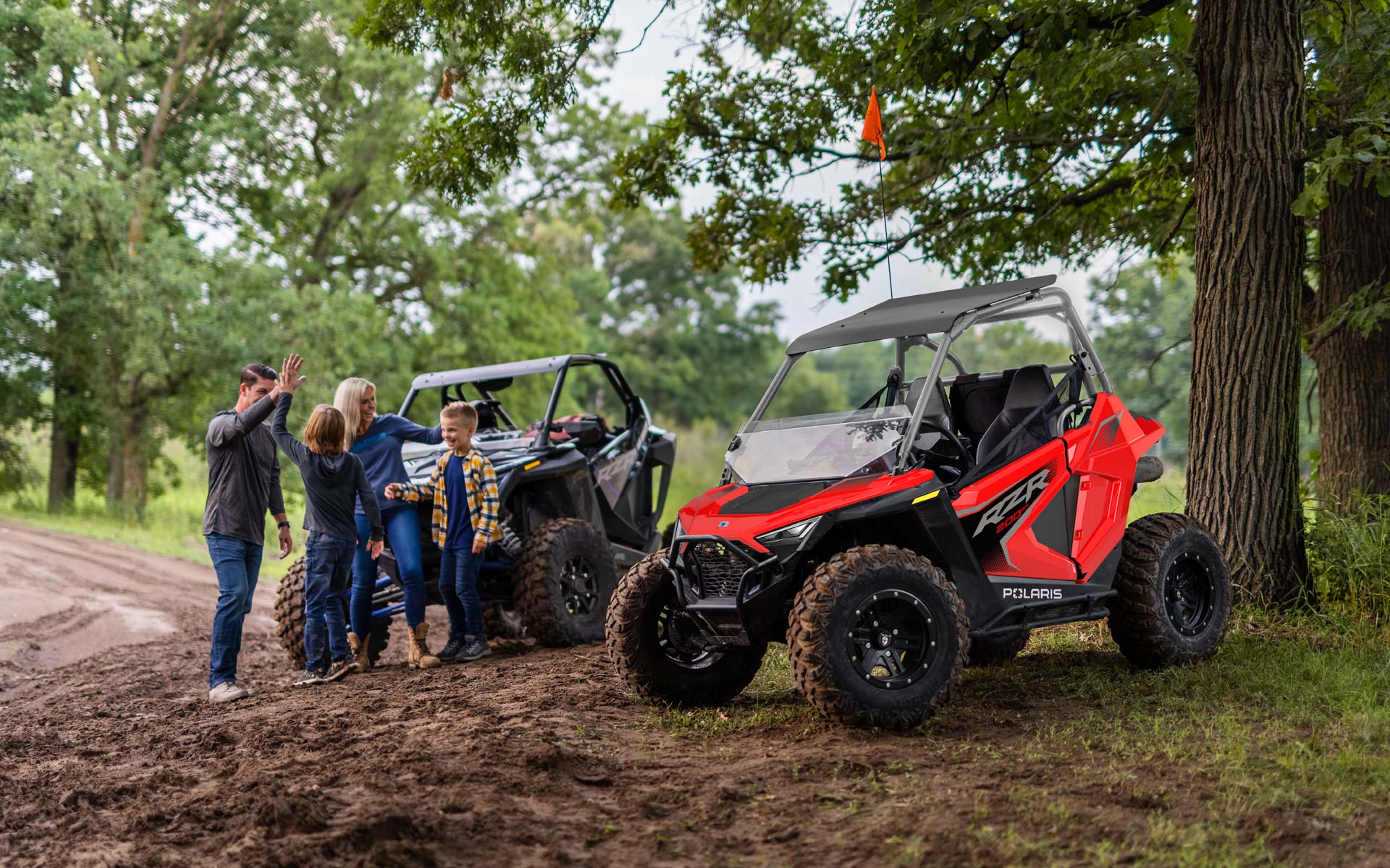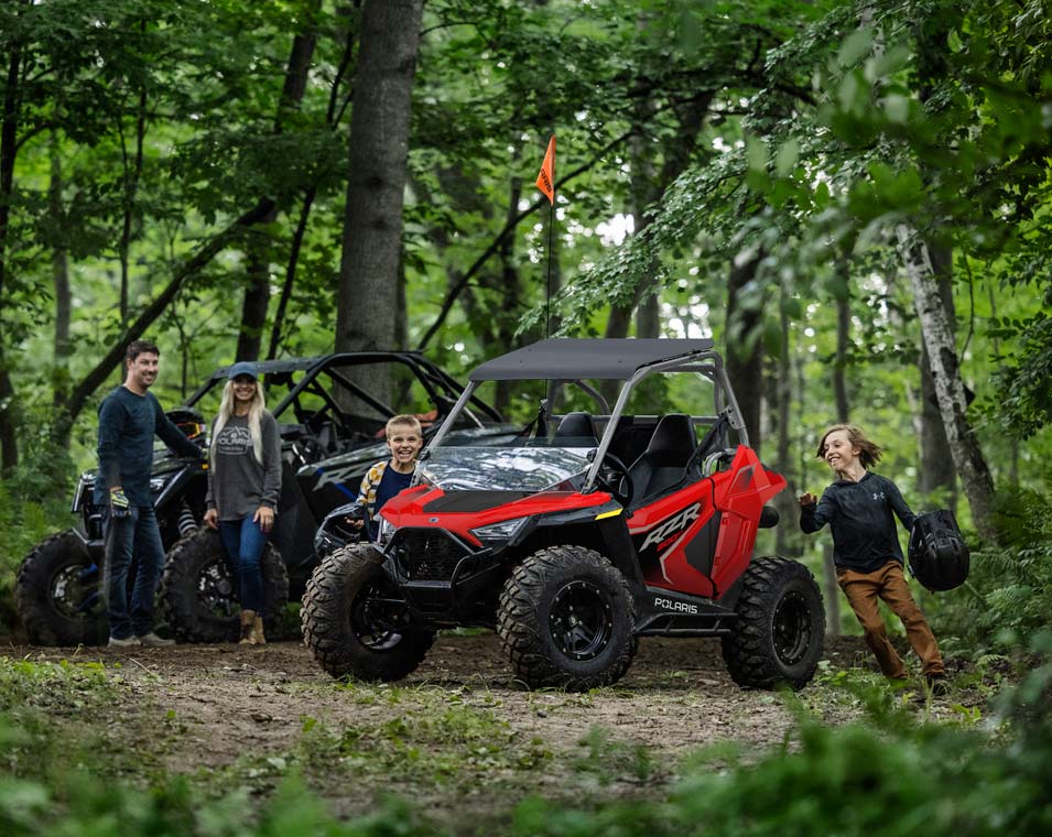 Enjoy peace of mind knowing the RZR comes with industry-leading safety features including a pin code start, adjustable speed limiter, geofencing, safety nets, industry-exclusive safety kit, and helmet aware technology.